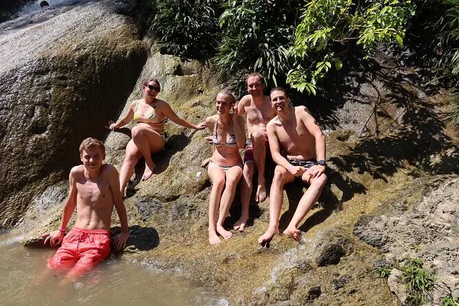 Les cascades elles-mêmes sont uniques — pas énormes ni bruyantes, mais il y a ce bruit constant de l’eau frappant les rochers qui semble étouffer tout le reste. Les locaux nageaient déjà à notre arrivée. L’eau est claire et fraîche — presque froide au premier contact — mais parfaite une fois dedans. Il y a des zones peu profondes pour tremper les pieds et des bassins plus profonds pour nager. Le soleil éclaire les rochers par endroits, ce qui permet de se réchauffer rapidement en sortant de l’eau.
