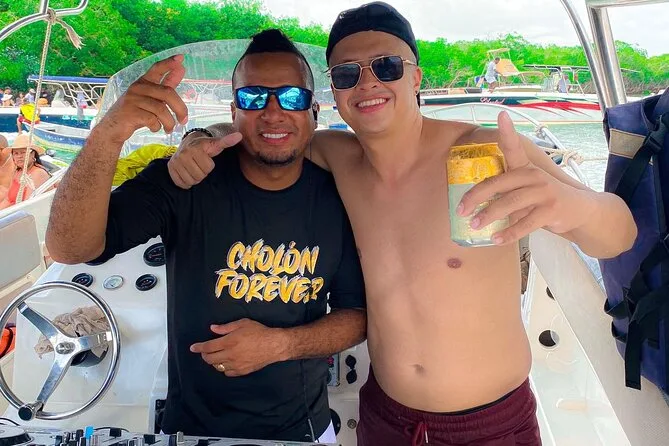 Bateaux festifs, musique sur l’eau turquoise, déjeuner sur la plage de Cholón