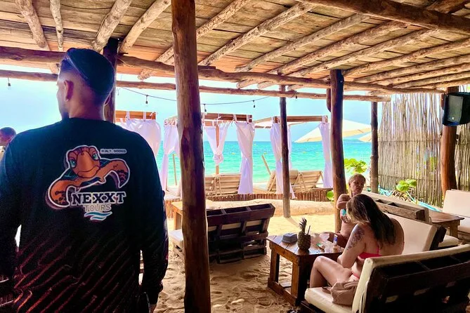 Ensuite, Playa Blanca était exactement ce dont j’avais besoin — juste de l’eau claire et du sable doux sous les pieds. On a marché cinq minutes jusqu’à un beach club où on m’a tendu une boisson fraîche avant même que je m’installe (je pourrais vite m’habituer). Le déjeuner se prenait avec un bon d’achat, à choisir librement dans leur menu — j’ai opté pour du poisson frit, en regardant des pélicans plonger au loin. Il y a toujours de la musique quelque part, mais aussi ces petits coins tranquilles où l’on peut simplement écouter les vagues et ne rien faire un moment.