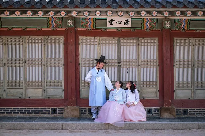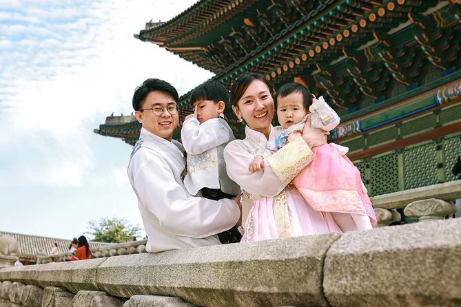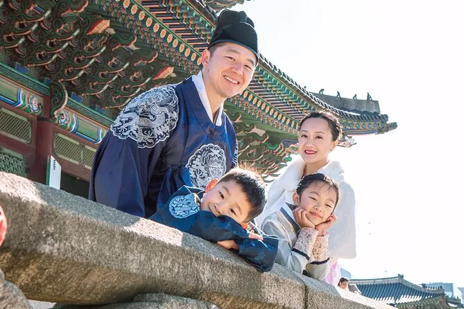 Vous pourrez enfiler un hanbok traditionnel, vous balader dans les jardins et cours du palais Gyeongbokgung, et profiter d’un photographe pro qui capte des instants authentiques, pas juste des poses. Idéal pour les familles ou groupes qui veulent plus que des selfies à Séoul.