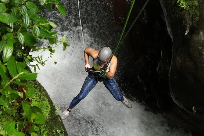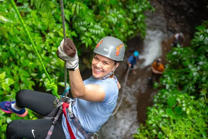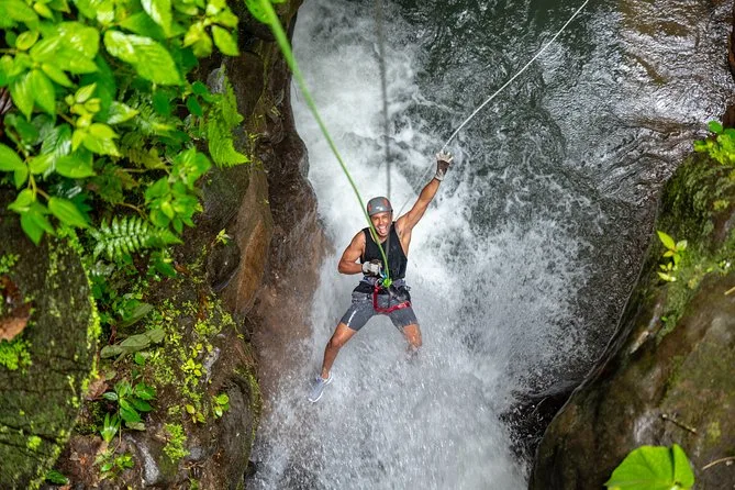 Aventure dans les canyons d’arenal avec sauts de cascade, tyroliennes et déjeuner au bord de la rivière