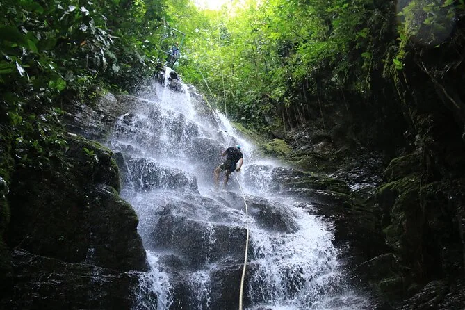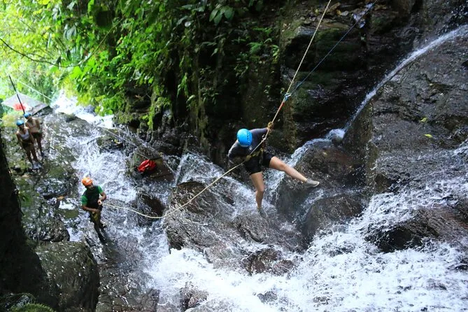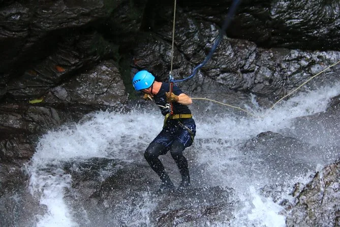 Le canyoning à Maquique comprend cinq descentes en rappel, dont trois passent directement sous des cascades.