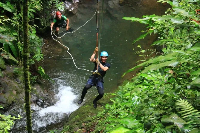 Votre journée comprend la prise en charge depuis votre hôtel, tout l’équipement pour les descentes en rappel et le rafting, des fruits locaux frais lors des pauses au bord de la rivière, des boissons tout au long de la journée, ainsi qu’un déjeuner typique costaricain avec riz, haricots et choix entre poulet haché ou poisson avant de revenir par les sentiers de la forêt tropicale.