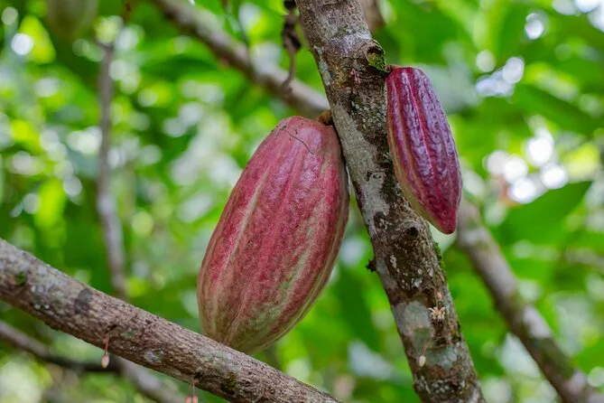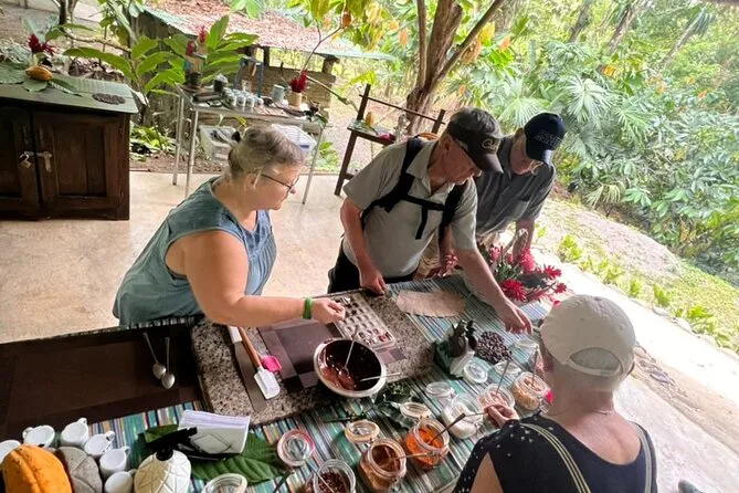 Votre journée comprend l’accès guidé à une plantation de cacao bio à La Fortuna avec un expert local qui vous accompagne à chaque étape ; toutes les dégustations incluses ; ainsi que du temps pour torréfier les fèves et fabriquer vos propres bonbons au chocolat avant de repartir collant mais ravi.