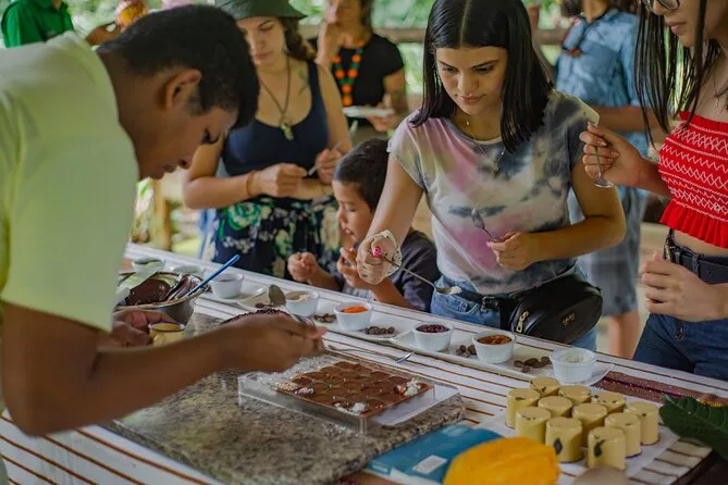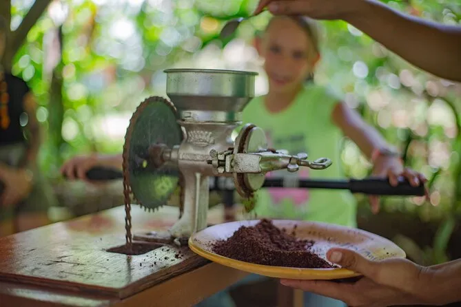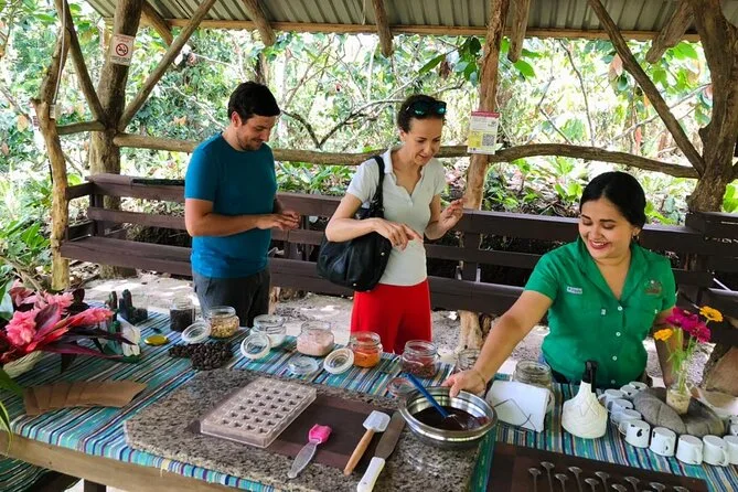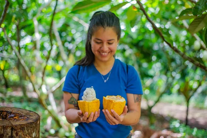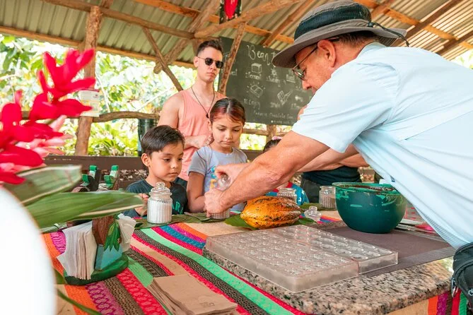 Parcourez une plantation de cacao bio à La Fortuna, goûtez la pulpe fraîche directement de la cabosse, torréfiez et broyez vos propres fèves dans un ranch authentique, puis lancez-vous dans la fabrication de véritables bonbons au chocolat. Avec un guide local pour petits groupes et beaucoup de rires, vous repartirez les doigts collants et le sourire aux lèvres.