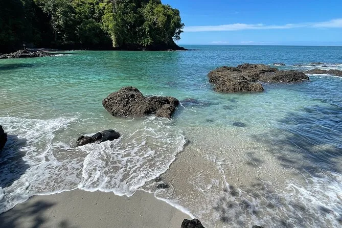 Ensuite, on a filé vers la plage de Manuel Antonio — cet endroit où la forêt déborde directement sur le sable. Je ne suis pas un grand nageur, mais même moi, j’ai pas pu résister à mettre les pieds dans l’eau ; elle était chaude, salée et étonnamment douce comparée à chez moi. Un couple de San José a discuté météo avec nous (“toujours humide”, rigolaient-ils), et une dame plus âgée m’a prêté de la crème solaire parce que les sprays sont interdits ici (j’avais oublié la mienne… classique). Si vous voulez rester plus longtemps à la plage après la visite, vous pouvez le prévoir à l’avance — j’aurais aimé le savoir avant, parce que quitter ce paysage a été plus dur que prévu.