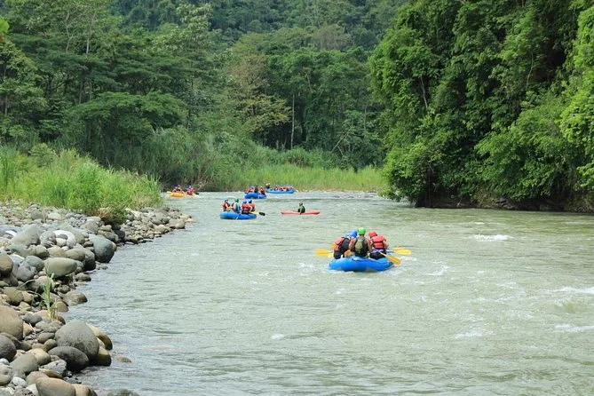 Vous descendrez la rivière Savegre au Costa Rica avec un guide local, affronterez des rapides amusants, ferez une pause fruitée près d’une cascade en pleine jungle, puis partagerez un déjeuner à Manuel Antonio. Rires, éclaboussures, paysages de forêt tropicale — et peut-être même un papillon ou deux — avec prise en charge à l’hôtel pour profiter à fond de l’aventure.