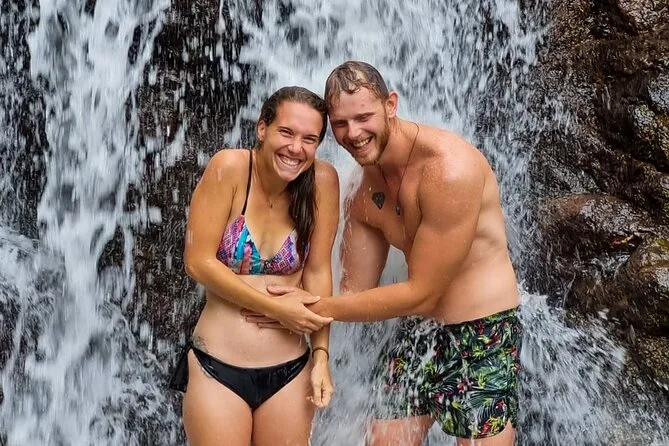 Je ne m’attendais pas à un tel silence en arrivant au parc Rainmaker. Notre groupe s’est garé sous des arbres ruisselants et on a continué à pied — les bottes s’enfonçant dans la boue. Il y a eu ce moment suspendu où tout le monde s’est tu d’un coup, un papillon morpho bleu est passé devant nous, presque lumineux dans cette lumière verte si particulière sous la canopée. Puis quelqu’un a eu un petit creux (pas moi cette fois) et on a tous éclaté de rire. Les cascades n’étaient pas gigantesques, mais se tenir dessous, c’était comme une douche fraîche après toute cette poussière et la sueur du quad.