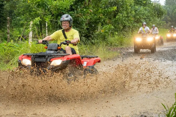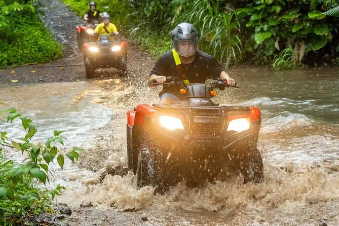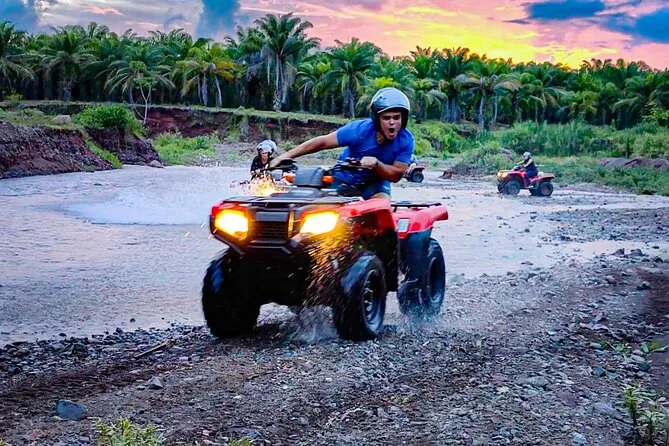 Conduisez votre propre quad sur les sentiers boueux de Manuel Antonio avec un guide local, puis partez en randonnée dans le parc Rainmaker pour observer la faune et vous baigner sous les cascades. Terminez par un déjeuner costaricien dans un ranch à la campagne — rires, bottes boueuses et surprises garanties.