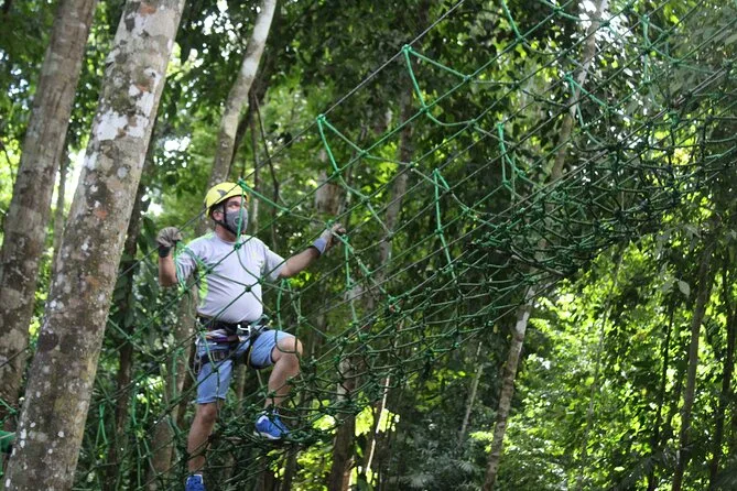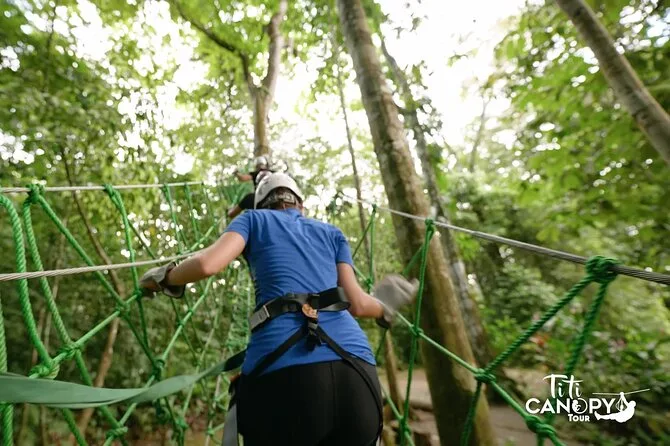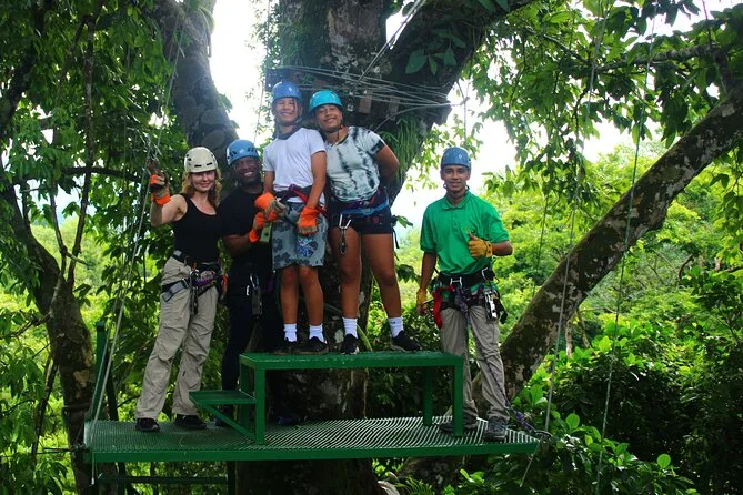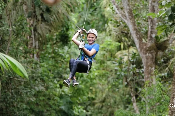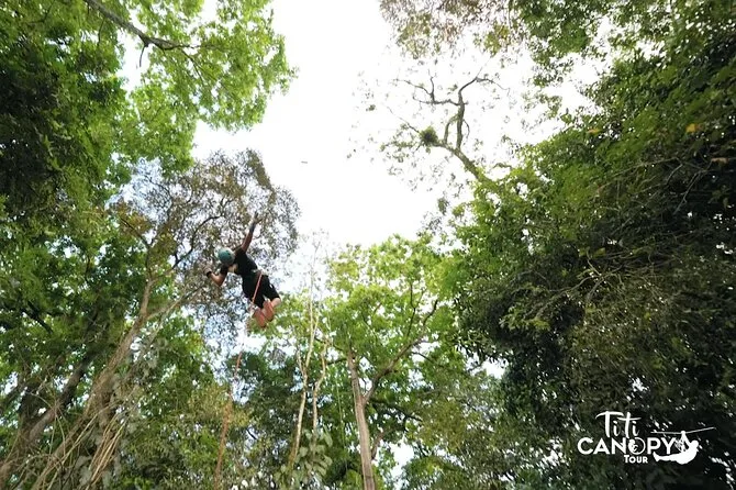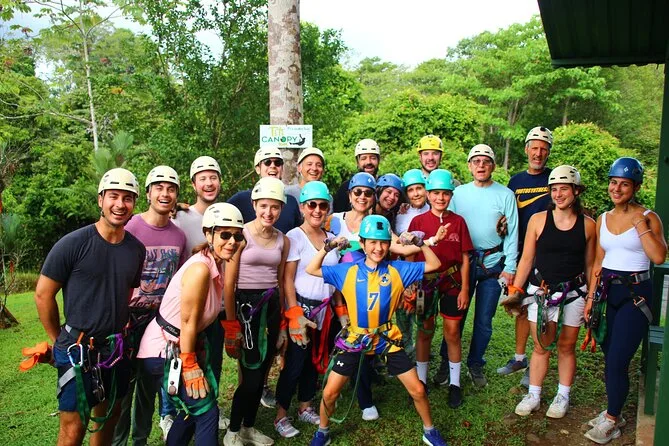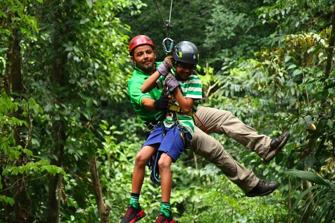 Votre journée comprend la prise en charge et le retour à l’hôtel à Quepos ou Manuel Antonio, toutes les activités comme les dix tyroliennes (dont une double), le balancement Tarzan, le rappel, la traversée du pont suspendu dans une réserve privée avec des guides locaux—et se termine par un repas frais avant de retourner à votre hôtel.