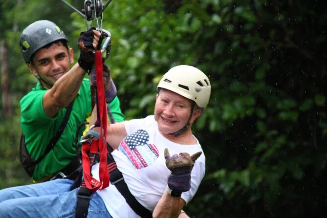 Survolez la canopée sur dix tyroliennes près de Manuel Antonio, testez le balancement Tarzan (si vous osez), traversez un pont suspendu et terminez par un déjeuner—le tout avec des guides locaux qui connaissent chaque cri d’oiseau. Ramassage rapide à l’hôtel pour profiter au max de l’aventure—et peut-être apercevoir les singes de près.