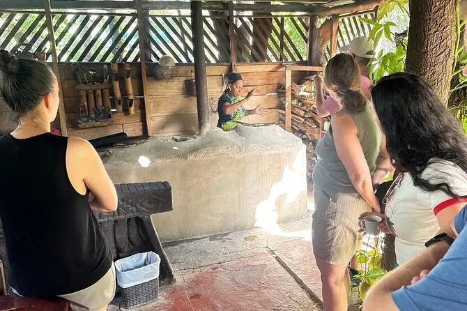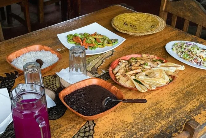 Après environ une heure et demie sur l’eau, nous sommes retournés pour goûter à la culture de Guanacaste. Dans une cuisine en plein air, Doña Rosa nous a montré comment façonner les tortillas à la main — elle a ri quand la mienne était toute de travers. Le maïs avait été moulu frais ce matin-là, on le sentait dès qu’on approchait. On a aussi essayé la poterie Chorotega. L’argile était fraîche et granuleuse, rien à voir avec ce que j’imaginais. Les locaux partageaient des histoires sur les traditions familiales pendant qu’on façonnait de petits bols. Le déjeuner était simple mais copieux — riz, haricots, plantains — et honnêtement, après tout cet air pur, c’était parfait.