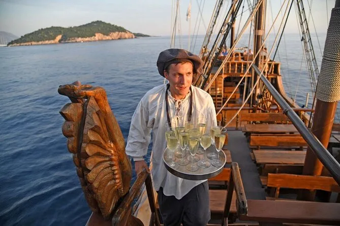 Montez à bord d’un vrai galion en bois pour une croisière au coucher du soleil autour des remparts de Dubrovnik, en sirotant du prosecco pendant que votre guide local vous raconte les légendes des capitaines et les secrets de l’Adriatique. Admirez l’île de Lokrum s’illuminer au crépuscule, respirez l’air marin et laissez-vous transporter dans un autre temps — sans discours ennuyeux ni course touristique.