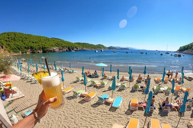 Votre journée comprend les transferts aller-retour en bateau rapide depuis Dubrovnik (ou villes voisines), eau en bouteille, bière et vin locaux à bord (et même de la grappa pour les plus courageux), tout le matériel de snorkeling avec flotteurs si besoin, et du temps libre à chaque arrêt — plus un transat offert si vous prenez un verre sous les parasols bleus de la plage de Šunj avant de repartir vers la ville.