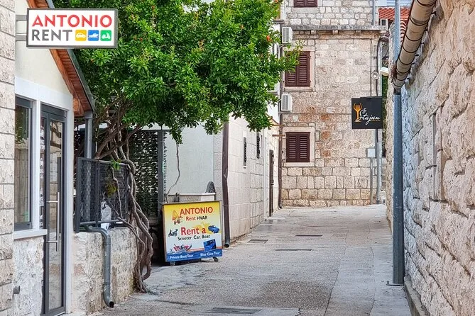 Si vous avez envie de pédaler un peu plus (et de transpirer un peu aussi), Stari Grad est accessible — c’est plus loin mais ça vaut le coup pour ses ruelles anciennes et le château Tvrdalj caché derrière ses murs épais. Nous, on a préféré la boucle plus courte et on a roulé jusqu’à Milna, où les galets craquaient sous nos pieds en arrivant à la plage. Le déjeuner était un poisson grillé dans une petite konoba ; je pense encore à cette huile d’olive citronnée qu’ils versaient partout. Après, une baignade à la plage de Pokonji Dol était parfaite — juste assez fraîche pour vous réveiller à nouveau.