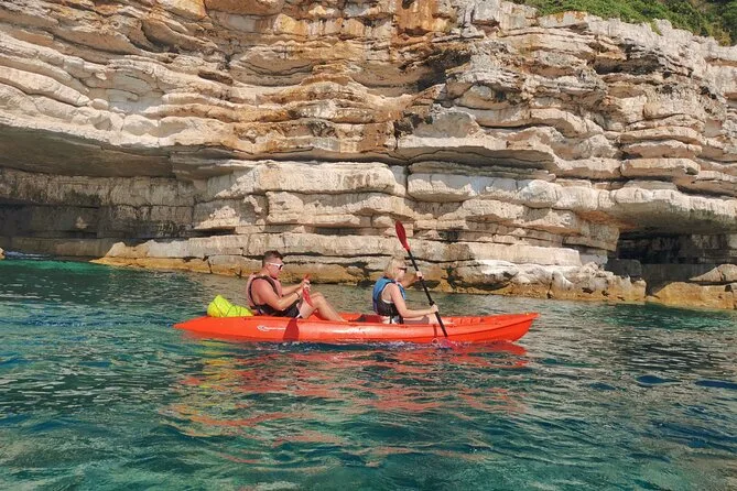 Votre journée comprend une traversée en bateau jusqu’au point de départ au large de Pula, tout le matériel de kayak avec équipement de sécurité et sac étanche pour vos affaires, de l’eau en bouteille pour rester hydraté, le matériel de snorkeling prêt à l’usage à la plage cachée (avec aide pour ajuster le masque), ainsi que des photos prises par votre guide pour que vous n’ayez pas à vous soucier de votre téléphone avant le retour en bateau.