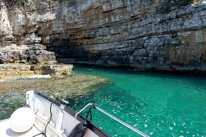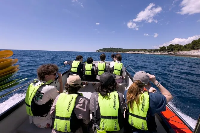 Je ne savais pas à quel point j’avais besoin d’être sur l’eau avant de quitter le port de Pula ce matin-là. La balade en bateau fut courte mais étonnamment apaisante — juste quelques-uns d’entre nous, le sel dans l’air, tout le monde un peu silencieux au début. Notre guide, Marko, a lancé une blague sur son coup de soleil (« souvenir croate », disait-il), et soudain, on s’est tous détendus. Quand on est arrivés à ce spot au large et qu’on a vu les kayaks flotter, c’était comme entrer dans un autre monde — pas une âme, juste la mer et ces falaises déchiquetées devant.