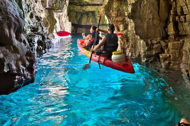 Votre journée comprend l’utilisation de matériel de kayak de qualité, un gilet de sauvetage, des sacs étanches pour vos affaires, le matériel de snorkeling pour explorer la Grotte Pourpre, ainsi que des photos et vidéos professionnelles prises par votre guide local tout au long de l’aventure.