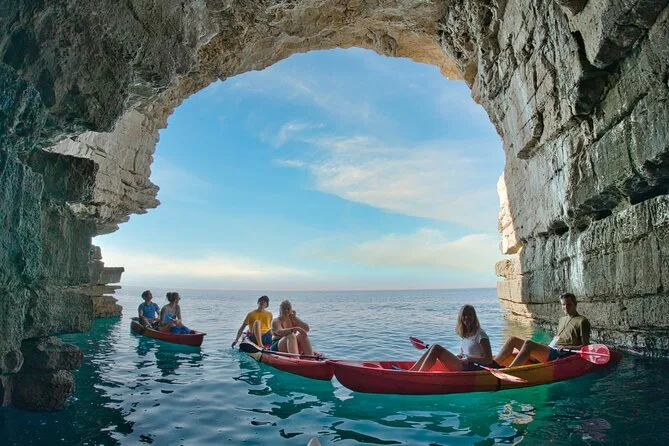 Il y a un écho quand ta pagaie touche l’eau pour la première fois près de Pula — un son creux, comme taper un tambour sous le ciel. Notre guide, Marko, a souri en voyant ma prise maladroite et a dit simplement : « T’inquiète, au début on a tous l’air un peu ridicules. » Ça m’a plu. Le soleil tapait déjà fort sur les rochers, mais la mer était fraîche quand j’ai trempé les doigts. On est partis dans ces kayaks colorés, presque trop joyeux pour mon stress de devoir suivre le rythme.