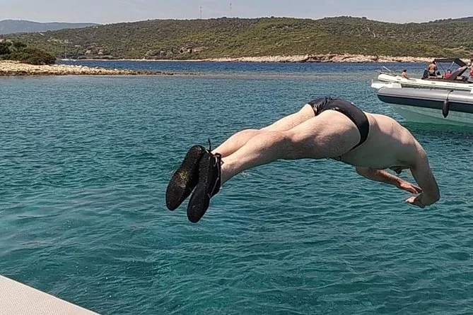 La matinée a failli mal commencer : j’ai presque raté le bateau à Split — classique. J’avais mal lu le point de rendez-vous (ne demandez pas), mais notre skipper Luka m’a juste fait un sourire complice et m’a fait signe, comme s’il avait l’habitude. Une brise marine salée soufflait déjà, et cette ambiance un peu endormie qu’on ressent quand des inconnus s’apprêtent à passer la journée ensemble. Le speedboat avait l’air tout neuf, avec une légère odeur de crème solaire et de plastique marin — pas sûr si c’est bon signe, mais ça collait bien à l’ambiance.