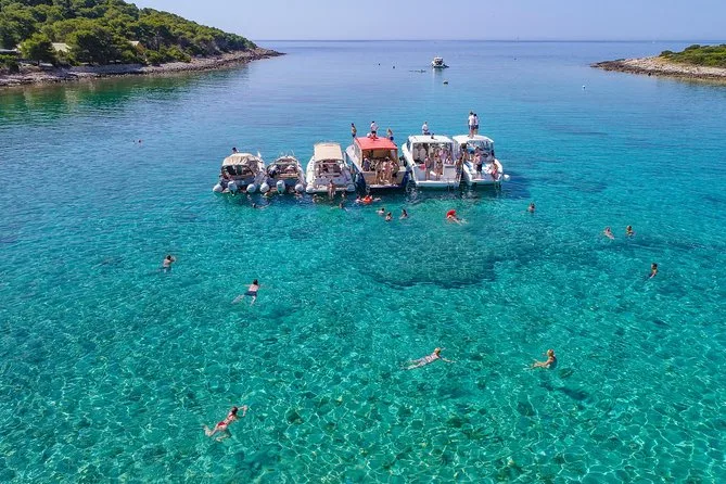 Embarquez sur un speedboat rapide depuis Split ou Brač avec un skipper local, plongez dans la Grotte Bleue illuminée, nagez dans la Blue Lagoon de Budikovac, et flânez dans les ruelles de Hvar et Komiža si le temps le permet. Rires, air salé, peut-être un petit coup sur la tête — mais surtout cette sensation d’évasion totale.