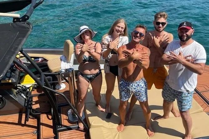 Le skipper/guide, les masques de snorkeling, les gilets de sécurité, l’assurance, un abri contre le soleil à bord et la musique Bluetooth.