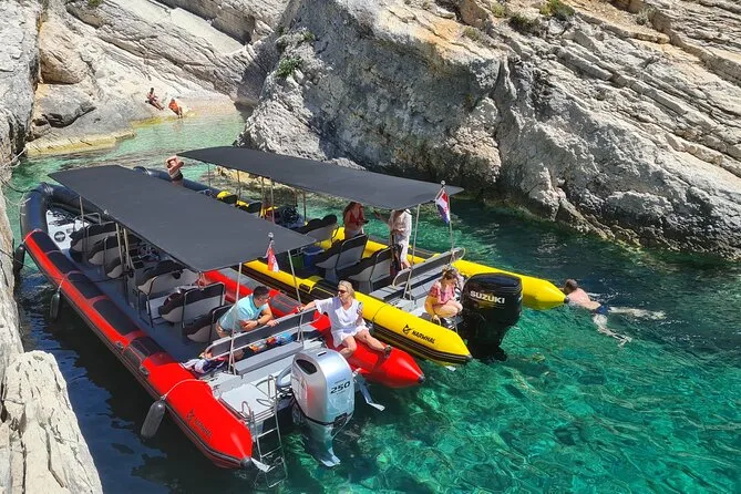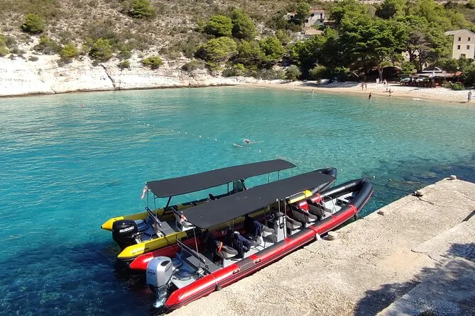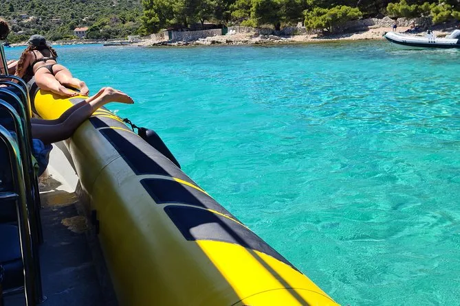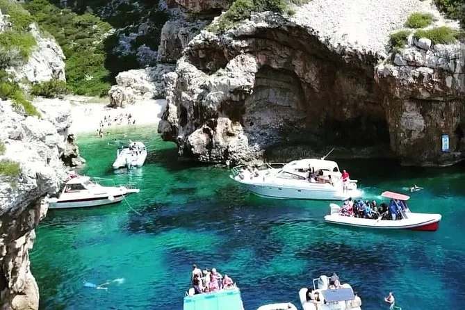 Votre journée comprend tous les transferts en bateau rapide entre Split et cinq îles avec un skipper local qui guide votre groupe (jusqu’à 12 personnes), l’entrée dans la grotte bleue de Biševo avec un guide officiel à l’intérieur, l’usage de masques de snorkeling lors des arrêts baignade à la baie de Stiniva et la lagune de Budikovac, ainsi que les gilets de sécurité pour tous à bord. Vous aurez aussi de la musique Bluetooth si quelqu’un veut jouer les DJ — sans oublier votre serviette et votre crème solaire.