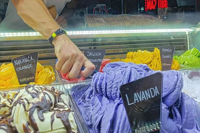 Ensuite, le burek — chaud, croustillant, farci au fromage ou à la viande selon les goûts (j’ai choisi fromage). La boulangère m’a fait un clin d’œil quand j’ai essayé de dire « hvala » et elle a sûrement deviné mon accent à trois rues de là. On s’est retrouvés dehors, la glace fondant sur ma main parce que j’avais choisi lavande sur les conseils d’Ana. L’odeur était si forte qu’elle m’a rappelé le placard à linge de ma grand-mère, ce qui peut paraître bizarre mais c’était étrangement réconfortant ici.