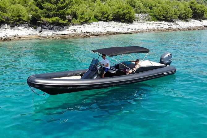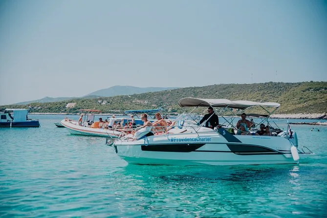 Votre journée comprend le transport privé en speedboat avec un skipper-guide anglophone depuis Split ou Trogir vers cinq îles ; assurance et équipements de sécurité (coupe-vent et gilets de sauvetage) ; prêt du matériel de snorkeling à Budikovac ; surcharge carburant incluse ; et accès coupe-file pour la Blue Cave afin de profiter plus longtemps de la visite.