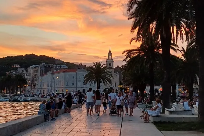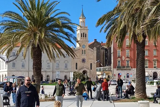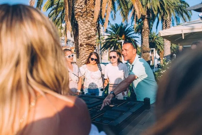 Votre journée comprend un itinéraire personnalisé dans la vieille ville de Split et le Palais de Dioclétien avec un guide local agréé qui a grandi ici — ainsi que toute l’organisation pour votre groupe privé. Les frais d’entrée pour les visites intérieures optionnelles (comme la cathédrale ou le temple) sont en supplément si vous décidez d’y aller ; sinon, tout est inclus dans votre expérience privée à pied, au départ de la promenade de la Riva.