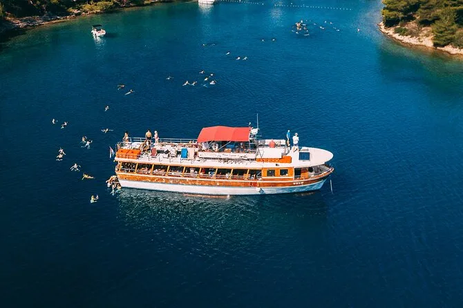 Votre journée comprend le transfert depuis le port de Trogir, toute la navigation entre les îles, l’utilisation du matériel de snorkeling à la Blue Lagoon, les boissons offertes dont le vin local, un déjeuner traditionnel servi au bord de la mer sous les pins, deux heures de temps libre à Maslinica sur l’île de Šolta pour vous détendre ou explorer, les commentaires en direct de votre guide tout au long de la journée, ainsi que des fruits frais servis à bord avant le retour en fin d’après-midi ou début de soirée.