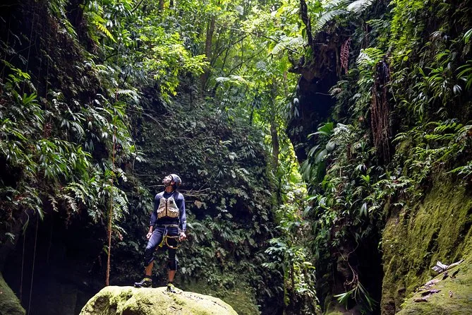 Plongez dans les canyons sauvages de Dominique : baignade en piscines naturelles, rappel et cascades