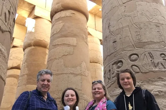 À Edfou, nous avons traversé la ville en calèche avant d’atteindre le temple d’Horus — le temple le mieux conservé que j’aie jamais vu. Les gravures sont si nettes qu’on distingue encore les détails des plumes d’Horus. Plus tard dans la journée, nous sommes arrivés à Luxor et avons exploré la salle hypostyle du temple de Karnak ; ces colonnes impressionnantes vous font vraiment sentir tout petit. Le soir venu, j’avais perdu le compte des photos prises.