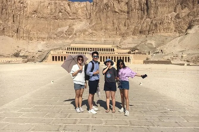 Le dernier jour a commencé par un petit-déjeuner avec vue sur le Nil avant de partir pour la rive ouest de Luxor. Marcher dans la Vallée des Rois est une expérience presque irréelle — un silence sacré règne dans chaque tombe, qui vous fait baisser la voix sans même y penser. Nous avons aussi visité le temple de Hatchepsout, niché contre des falaises roses, puis fait halte aux Colosses de Memnon où des enfants du coin vendaient des cartes postales pour quelques livres. Après toute cette histoire, retour à la gare de Luxor pour un autre train de nuit vers le nord — fatigué, mais avec l’envie secrète que le voyage ne s’arrête pas tout de suite.