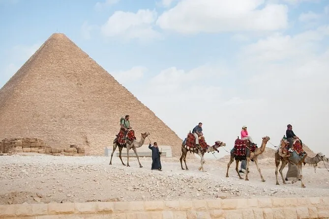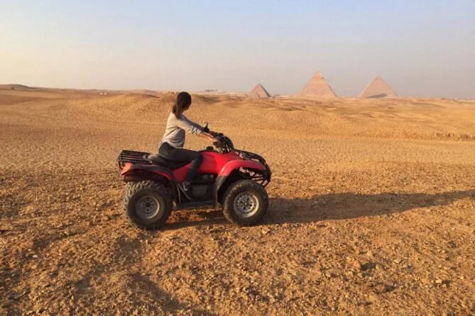 Votre journée comprend un transfert privé en véhicule climatisé avec un guide égyptologue agréé qui vous accompagnera sur chaque site. Vous profiterez d’un déjeuner dans un restaurant local ainsi que d’une balade de 30 minutes à dos de chameau et d’un safari en quad autour des pyramides de Gizeh avant de retourner à votre hôtel au Caire ou à Gizeh.