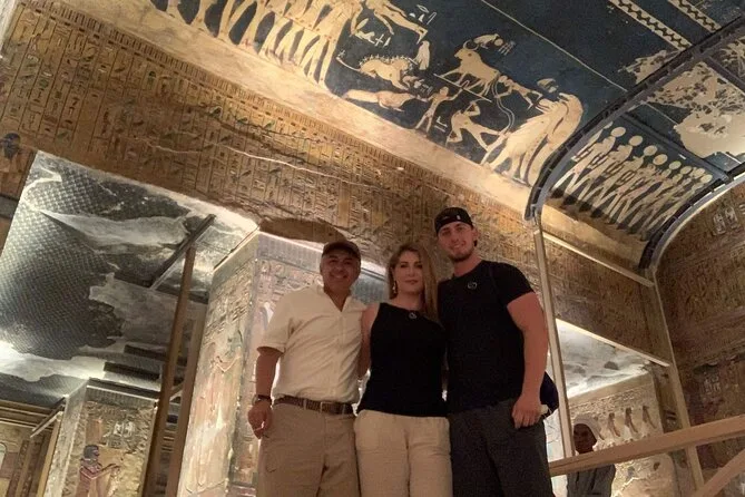 Vous bénéficierez d’un transport privé avec WiFi, de tous les frais d’entrée inclus, d’un guide égyptologue expert à vos côtés, ainsi que d’un déjeuner sur une felouque. L’excursion est accessible aux fauteuils roulants et poussettes — indiquez-nous simplement si vous avez besoin de sièges bébé ou d’une assistance supplémentaire.