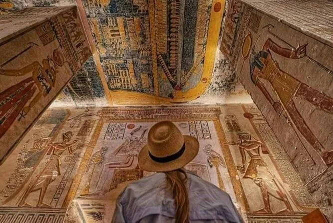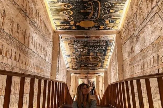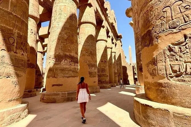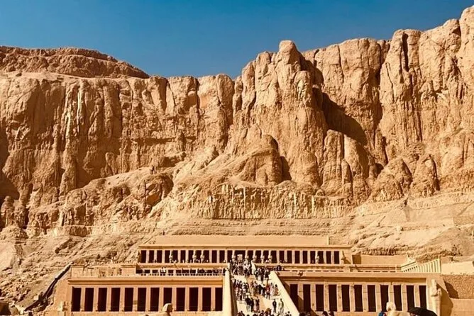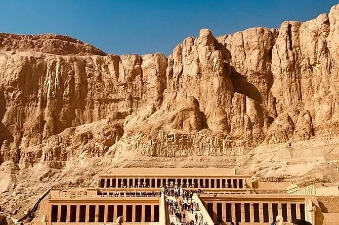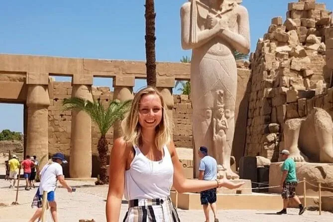 Vous découvrirez le temple de Karnak, la Vallée des Rois (avec trois tombes), la tombe de Toutânkhamon, les Colosses de Memnon et le temple d’Hatchepsout.
