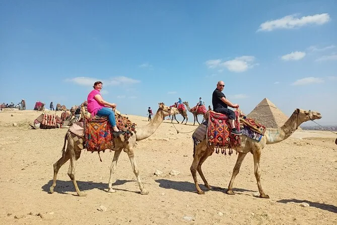 Marchez parmi les géants de Gizeh avec un égyptologue privé, chevauchez des chameaux sur le sable doré, explorez les tombes millénaires de Saqqarah de près et savourez un déjeuner frais avec vue sur les pyramides. Cette excursion d’une journée vous plonge dans l’histoire vivante de l’Égypte — parfois maladroitement (bonjour le chameau), toujours inoubliable.