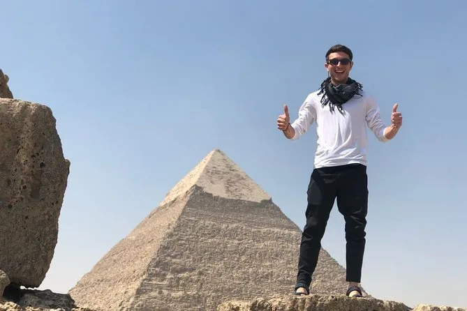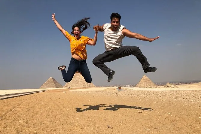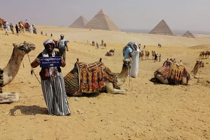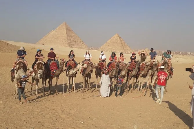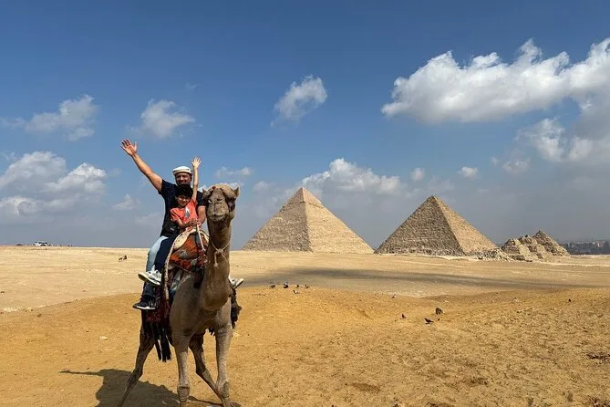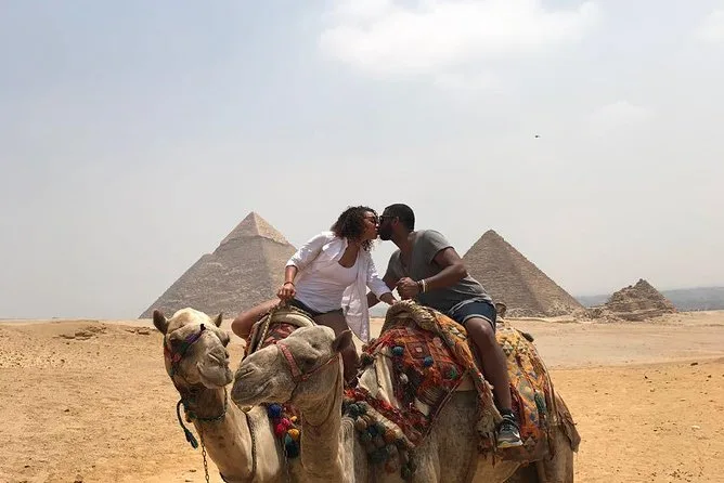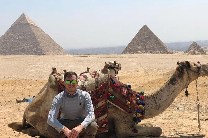 Votre journée comprend la prise en charge privée à l’hôtel au Caire en voiture ou van, les billets d’entrée au complexe des pyramides de Gizeh avec accès à l’intérieur de la pyramide de Mykérinos (option VIP), une balade à dos de chameau de 30 minutes sur le plateau près des pyramides de Khafre et Khéops, un temps avec un guide égyptologue qualifié qui vous aide pour les photos ou répond à vos questions, ainsi qu’un déjeuner dans un restaurant local avant le retour en ville ensemble.