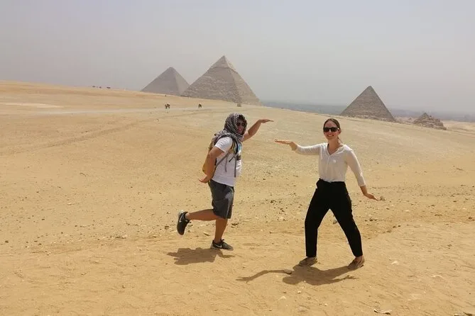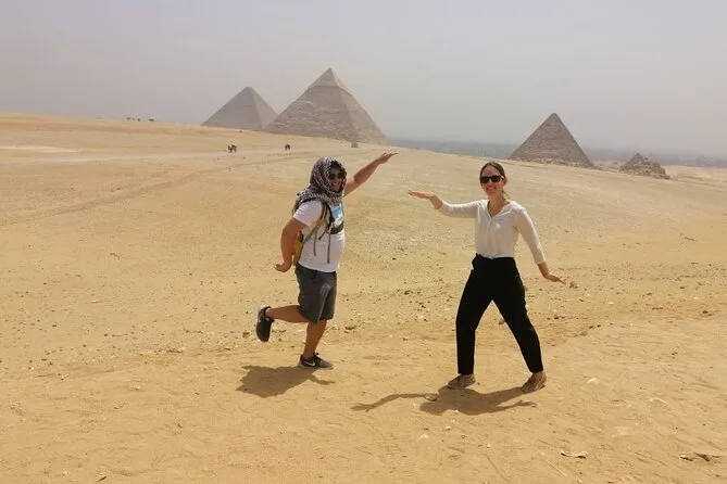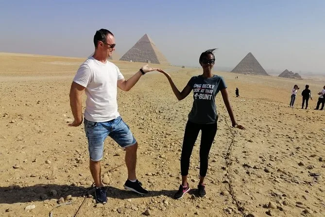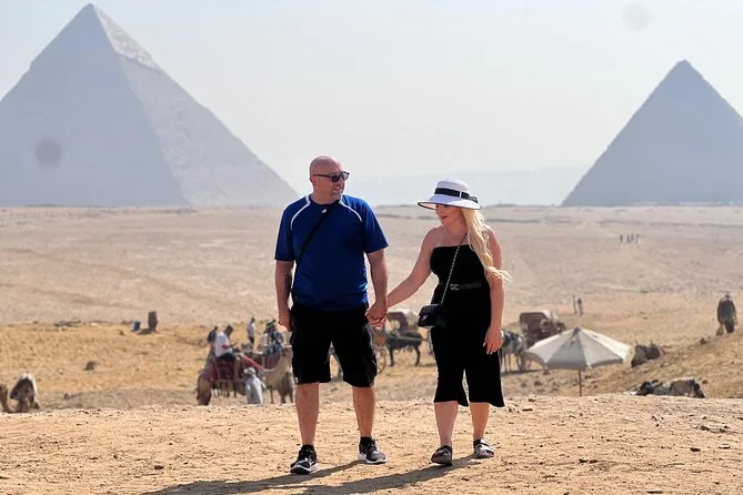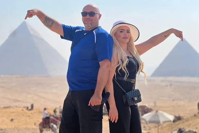 Vous commencez par une prise en charge à l’hôtel au Caire, puis vous déambulez parmi les pyramides de Gizeh avec un guide égyptologue qui raconte de vraies histoires — pas juste des faits. Balade à dos de chameau près des pyramides de Khafre et Mykérinos, visite d’une tombe ancienne, regard échangé avec le Sphinx, puis déjeuner partagé. Ce n’est pas une simple visite, c’est une immersion dans quelque chose de grand.