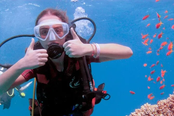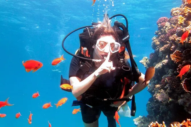 Commencez votre journée en apprenant les bases de la plongée en eaux calmes près de Sharm El Sheikh, puis partez pour votre première vraie plongée en Mer Rouge avec un instructeur PADI certifié. Profitez d’un déjeuner simple à bord entre les plongées et prenez le soleil en partageant vos histoires avec d’autres voyageurs. Ce n’est pas juste voir des poissons — c’est se sentir plus courageux que prévu.