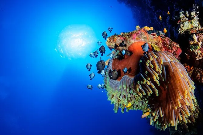 Votre journée comprend le transfert aller-retour en véhicule climatisé, l’utilisation de tout le matériel de plongée nécessaire, une session de 25 minutes en eau confinée puis une plongée de 25 minutes en milieu naturel avec un instructeur PADI professionnel. Vous dégusterez un déjeuner à bord — poulet, riz ou pâtes accompagnés de salades fraîches — et des boissons comme de l’eau, café, thé ou soda sont aussi proposées avant le retour à votre hôtel.