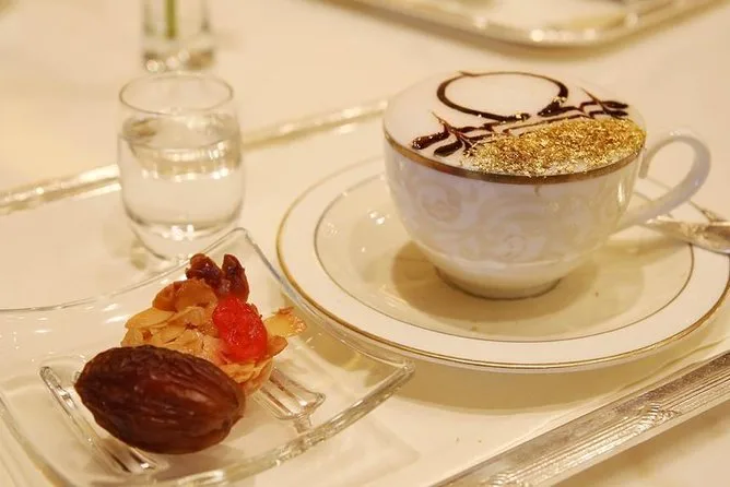 La dernière étape, c’était le Emirates Palace pour le thé. C’est aussi somptueux qu’on le dit, mais sans aucune prétention — sûrement parce que notre serveur plaisantait en disant qu’il se perd encore dans les couloirs après deux ans. Le café était accompagné de dattes et d’une douceur dont je ne retiens même pas le nom (Li a ri quand j’ai essayé de la prononcer en arabe). Assise là, dans des tasses à liseré doré, en regardant défiler des gens habillés de toutes sortes de façons… c’était à la fois chic et étonnamment chaleureux. Le retour à Dubaï s’est fait dans le silence, chacun observant les lumières de la ville s’allumer. Je repense souvent à ce moment, pieds nus sur le marbre de la mosquée — ça vous marque, vous savez ?