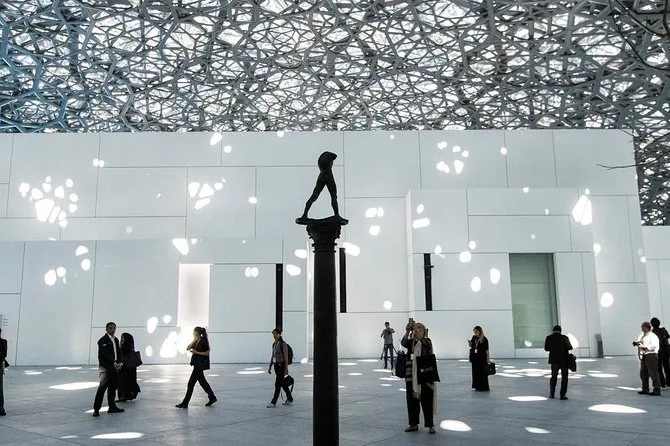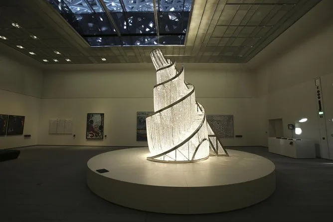 Ensuite, nous avons filé au Louvre Abu Dhabi. Honnêtement, je pensais juste faire un tour rapide (l’art moderne, ce n’est pas trop mon truc), mais Kareem a commencé à raconter des histoires sur certaines œuvres — comme cette sculpture qui a survécu à une tempête de sable avant d’arriver ici. La lumière à l’intérieur est étrange et magnifique ; elle filtre à travers ces panneaux ajourés et adoucit tout. Des enfants dessinaient sur des petits tabourets et un couple plus âgé discutait doucement pour savoir quelle peinture valait vraiment le coup. J’ai adoré ce moment.