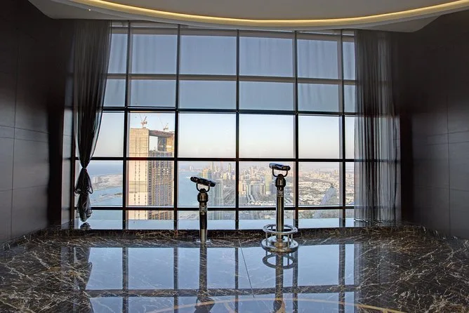 Le déjeuner au restaurant Al Khayma Heritage a été comme un moment suspendu — climatisation bienvenue et un riz épicé aux saveurs inédites pour moi. Quelqu’un à notre table a tenté de commander en arabe ; le serveur a ri doucement et l’a aidé. Ensuite, on a filé aux Etihad Towers pour profiter de la vue panoramique (l’ascenseur vaut déjà le détour). La ville semblait irréelle vue d’en haut — brillante, vitrée, mais aussi étrangement paisible. Peut-être que j’avais juste besoin d’une sieste après le repas.