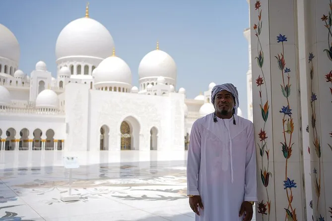 Entrez dans la Mosquée Sheikh Zayed d’Abu Dhabi baignée de lumière, admirez la ville depuis l’observatoire des Etihad Towers, savourez un déjeuner traditionnel à Al Khayma, puis découvrez les somptueuses salles du palais Qasr Al Watan. Attendez-vous à des surprises, des éclats de rire et des instants de calme à emporter avec vous.