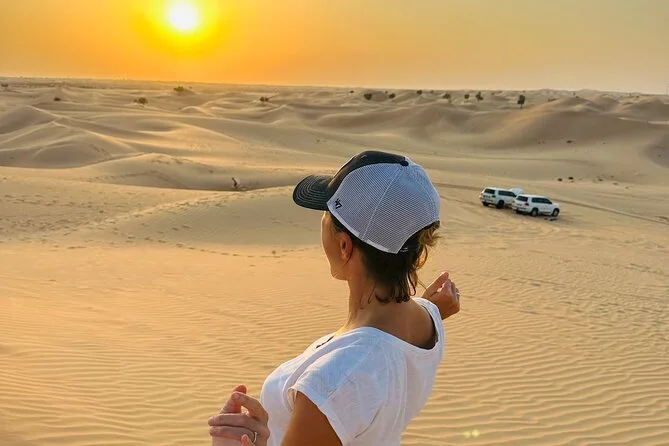 Votre journée commence par une prise en charge à votre hôtel ou à l’entrée d’un centre commercial à Abu Dhabi, en 4x4 pouvant accueillir jusqu’à six personnes. Vous aurez de l’eau en bouteille tout au long du trajet, ainsi que du café ou du thé au camp. L’expérience comprend du dune bashing dans le désert d’Al Khatim, des pauses photos au pied des dunes, la visite d’une ferme aux chameaux (avec nourrissage), une courte balade à dos de chameau pour le plaisir, et du sandboard sur des pentes douces avant de retourner en ville.
