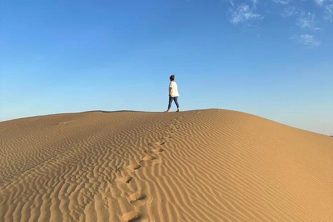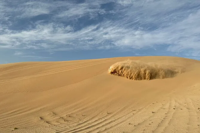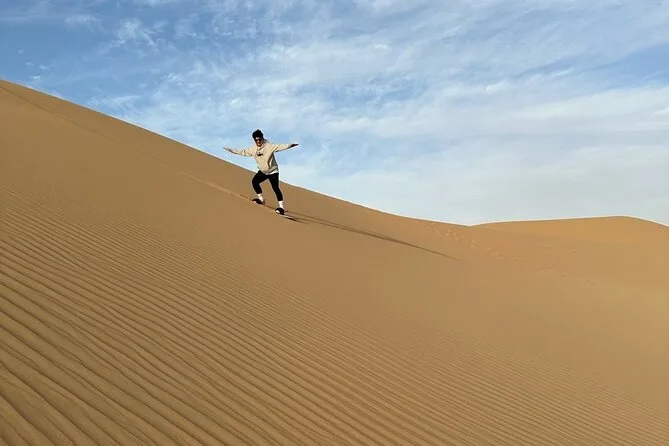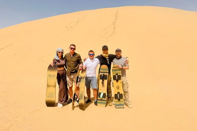 Vous ferez du dune bashing, visiterez une ferme aux chameaux (avec nourrissage), profiterez d’une courte balade à dos de chameau, ferez du sandboard, et pourrez louer un quad en option.