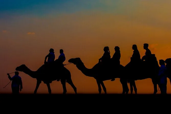 Votre soirée commence par un transfert depuis votre hôtel ou lieu choisi à Dubaï avec un guide safari anglophone agréé, suivi d’une balade à dos de chameau de 45 minutes au coucher du soleil sur des dunes paisibles, un café arabe et des douceurs dans une tente bédouine avec possibilité d’observer ou photographier les faucons (selon disponibilité), ainsi qu’une décoration au henné si vous le souhaitez. Au camp, vous profiterez d’un dîner BBQ VIP avec service à table, boissons incluses, tout en assistant à des spectacles de danse Tanoura et orientale avant de retourner en ville.