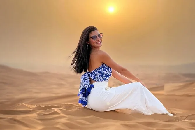 Votre journée comprend une prise en charge privée depuis votre hôtel ou lieu choisi à Dubaï en 4x4 avec un chauffeur expérimenté qui maîtrise aussi bien la ville que les pistes sablonneuses. Vous ferez du dune bashing sur les dunes rouges, une balade traditionnelle à dos de chameau dans le désert, du sandboard (chuter fait partie du jeu), des photos avec un faucon local, et profiterez de rafraîchissements offerts avant d’être ramené à votre point de départ à Dubaï.